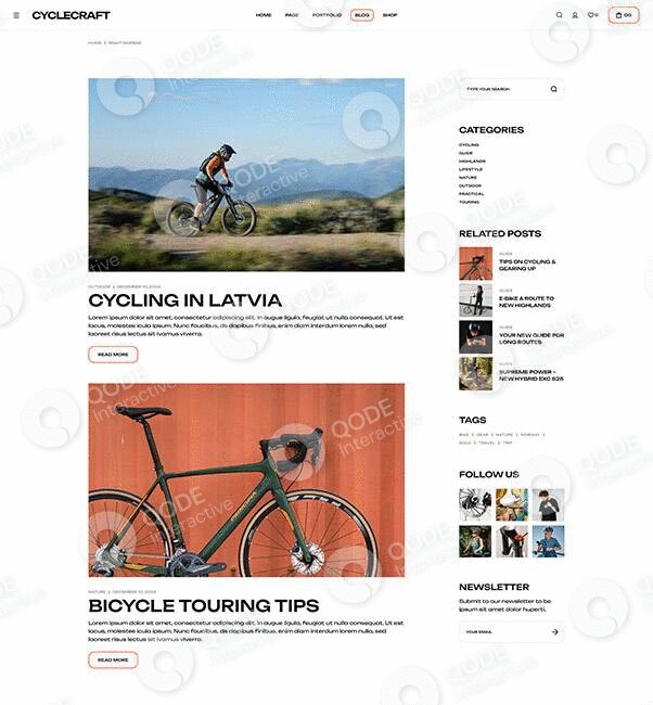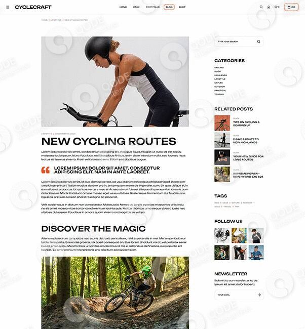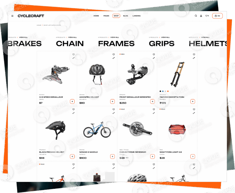 Showcase all your cycling gear and products in a complete, captivating way with this website example.